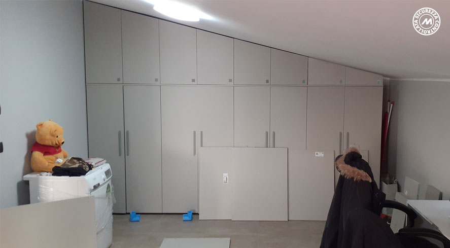 Le immagini che vi mostreremo sono durante il montaggio dei due armadi mansardati con tipologia di ante differenti