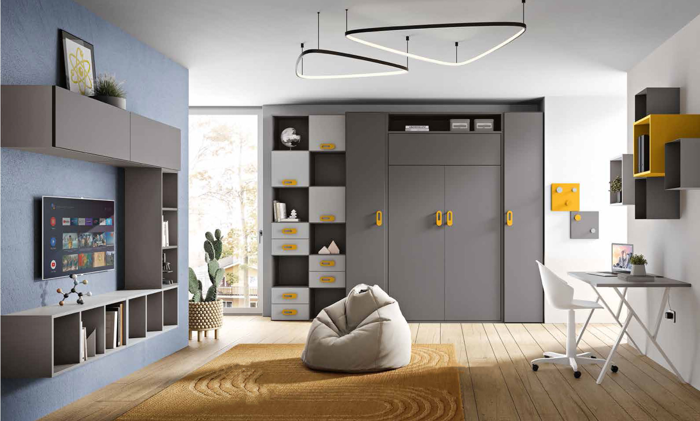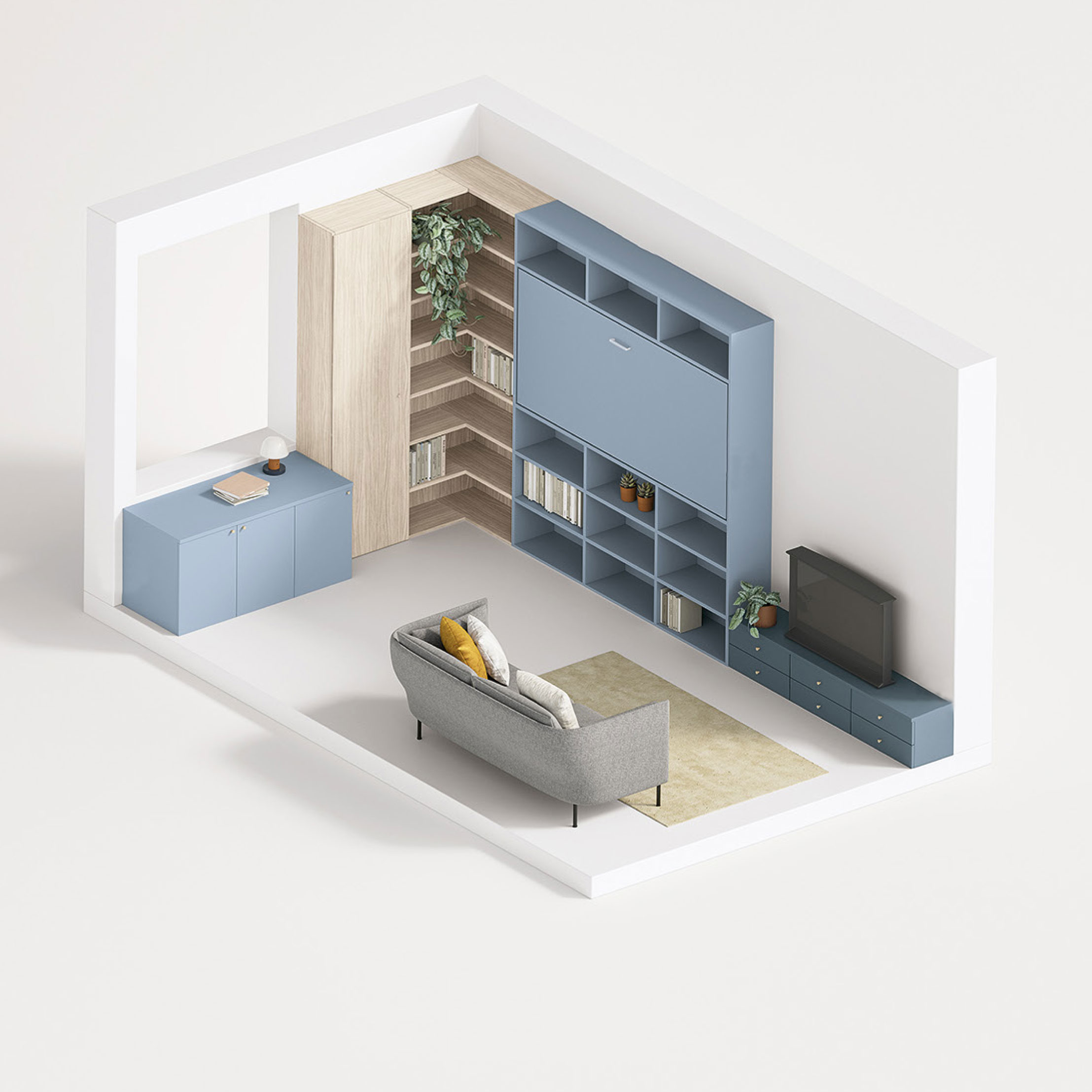 Cameretta trasformabile inserita in un soggiorno living